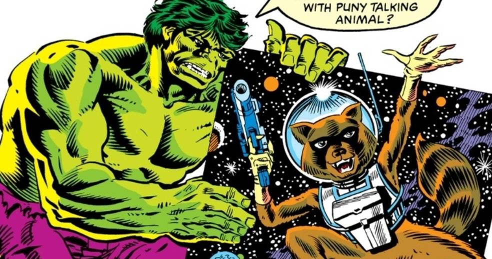 Nos quadrinhos, Hulk e Rocket se encontraram pela pela primeira vez em "Incredible Hulk #272", numa história intitulada "O Mal Não Tem Fronteiras", marcando ao aniversário de 20 anos do título mensal do Golias Esmeralda nos EUA. A história se inicia com o Hulk acordando em um planeta, onde os animais se comunicam, no qual um deles é Rocket.