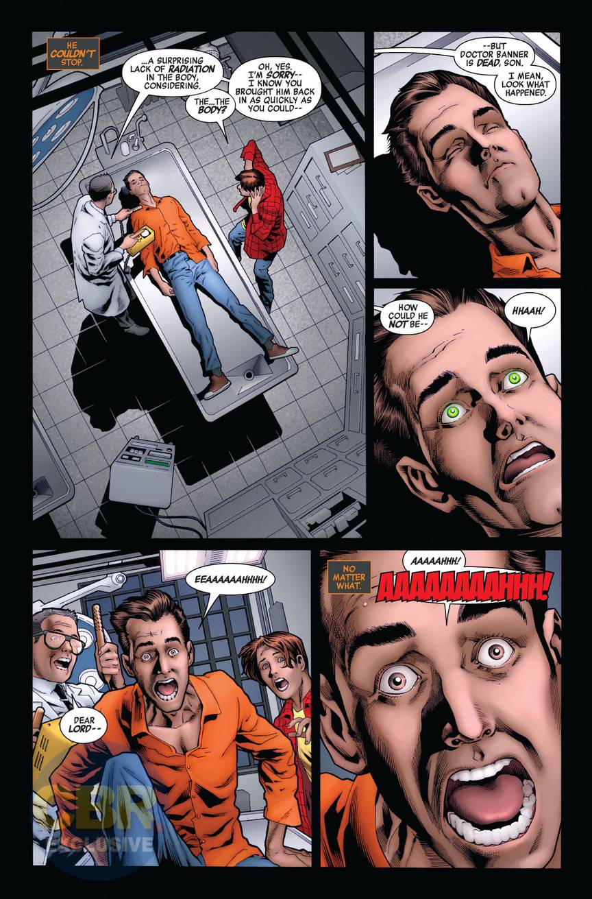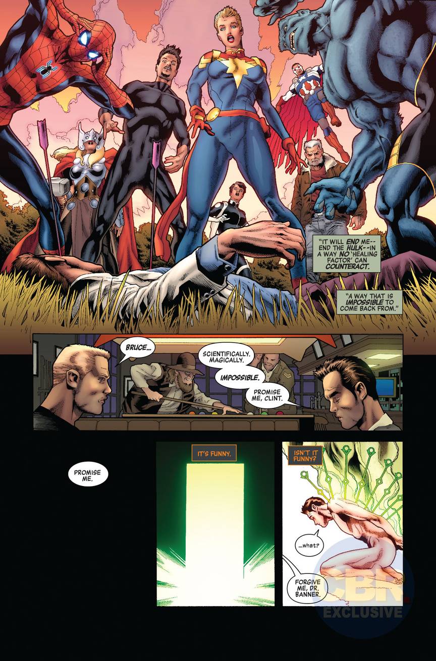 A prévia não apenas revisitará a conversação entre Clint e Bruce na qual o doutor teria convencido o Arqueiro a matá-lo caso fosse necessário, mas também um estágio conjunto para a chegada da encarnação "Imortal". Através de uma rápida retrospectiva, nós veremos pelo menos sete outras vezes em que Bruce e seu alter ego de pele verde morreram, apenas para retornar da sepultura novamente, e novamente, e novamente.