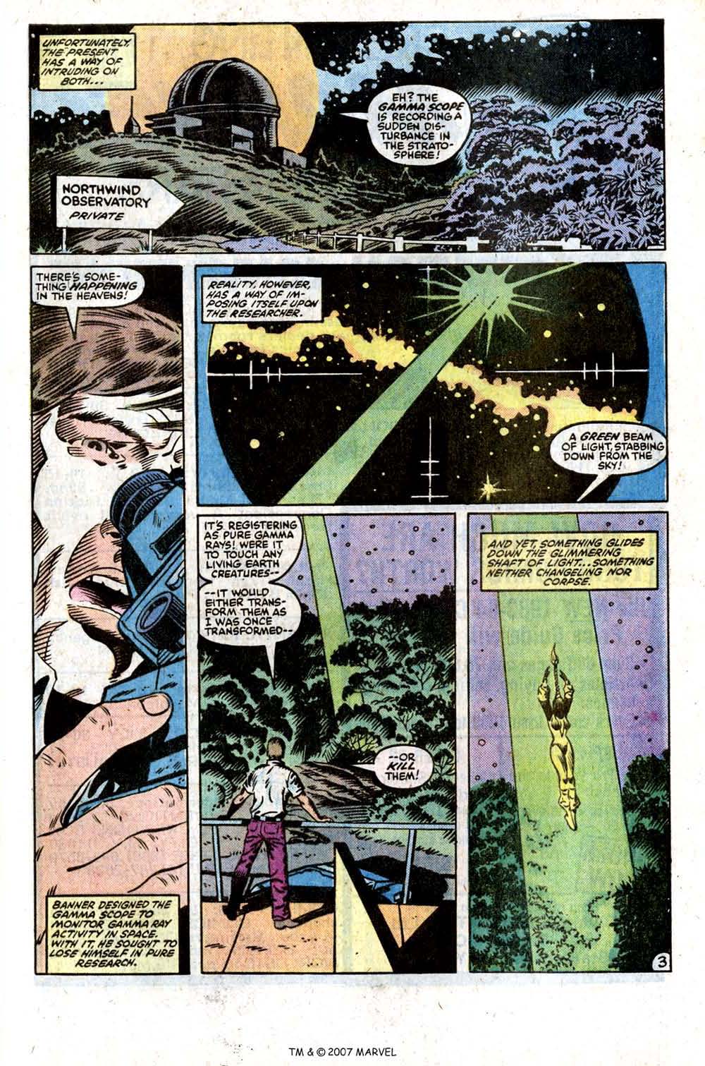 Mas infelizmente, o presente tem um caminho para introduzir ambos... Banner desenvolveu o telescópio gama como monitor para a atividade dos raios gama no espaço. Com isso, ele se aprofundará ainda mais em suas pesquisas. Algo estranho está descendo dos céus...