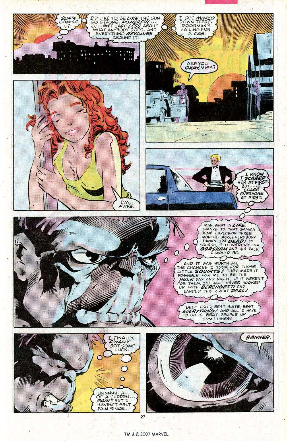 Com Bruce se tornando mais confortável com o Hulk cinza... o cinzento se torna mais confortável com o sol. E ao se manifestar durante o dia... a luz solar o afeta. O Hulk cinza não é mais hostil do que as outras personalidades... ele aceitou o seu lugar no mundo... trabalhando por uma boa causa... e se preocupando com outras pessoas e seus sentimentos. Esse Hulk ainda não gosta de Banner... mas não há uma recusa... eles estão unidos e trabalhando juntos. Se for a vez dessa versão se manifestar durante o dia... significa que esse Hulk está se parecendo mais com Bruce.