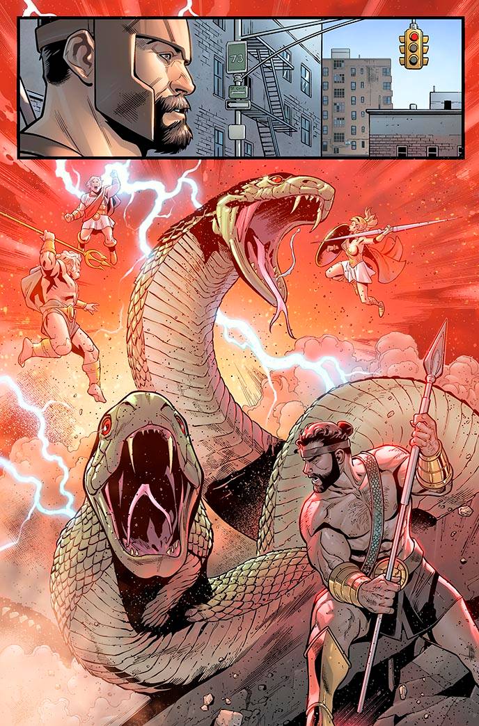 Quanto a Paco - o que posso dizer? Ele e ótimo! Trabalhar com ele novamente é uma mistura inebriante de nostalgia pelo passado e vontade de ver o futuro, porque cada página que ele desenha é melhor que a última. Eu não posso dizer o quanto estou ansioso para dialogar as páginas que estão chegando (pelo menos, as que eu escrevi) - é sempre um prazer, porque as coisas dele funcionam instantaneamente, de uma maneira que é difícil descrever até você coloca palavras nele. E enquanto estamos nisso - podemos chamar a atenção para as lindas tintas de Juan Vlasco e as deslumbrantes matizes coloridas de Jesus Aburtov?