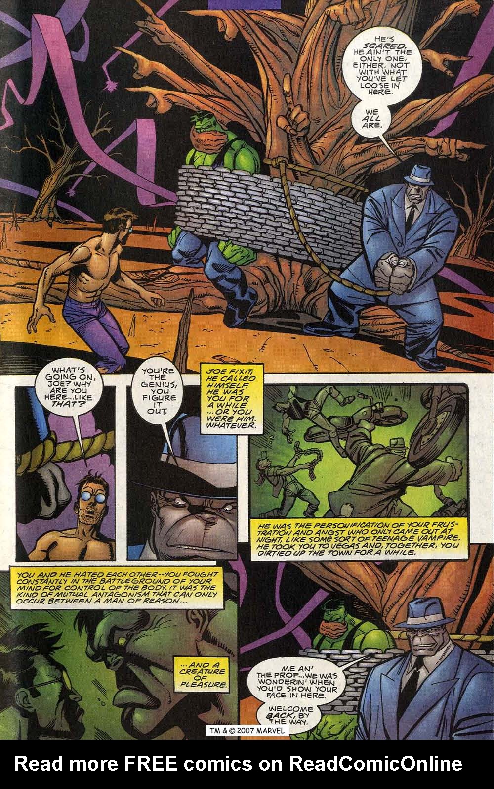 O segundo título mensal do Hulk publicado em meados dos anos 2000... foi extremamente coeso ao trabalhar a psique de Bruce Banner. O roteirista... Paul Jenkins... utilizou de uma abordagem trabalhada primeiramente por Bill Mantlo... da qual Peter David usou como base estrutural em suas histórias. O trauma psicológico de Banner já é conhecido por muitos leitores da velha escola... o medo e a culpa que o cientista carrega por ter assassinado o seu pai a sangue frio na sepultura de sua mãe.