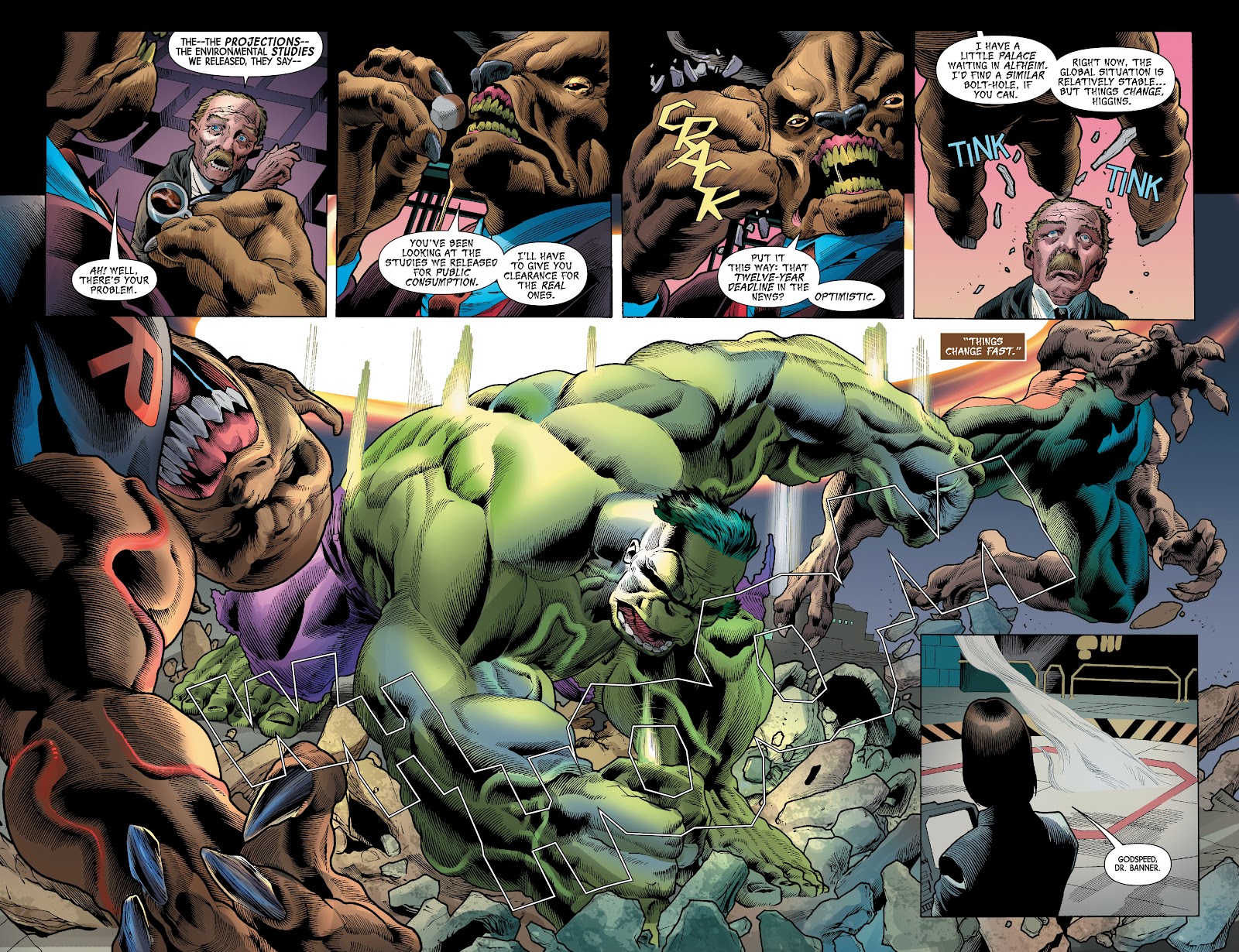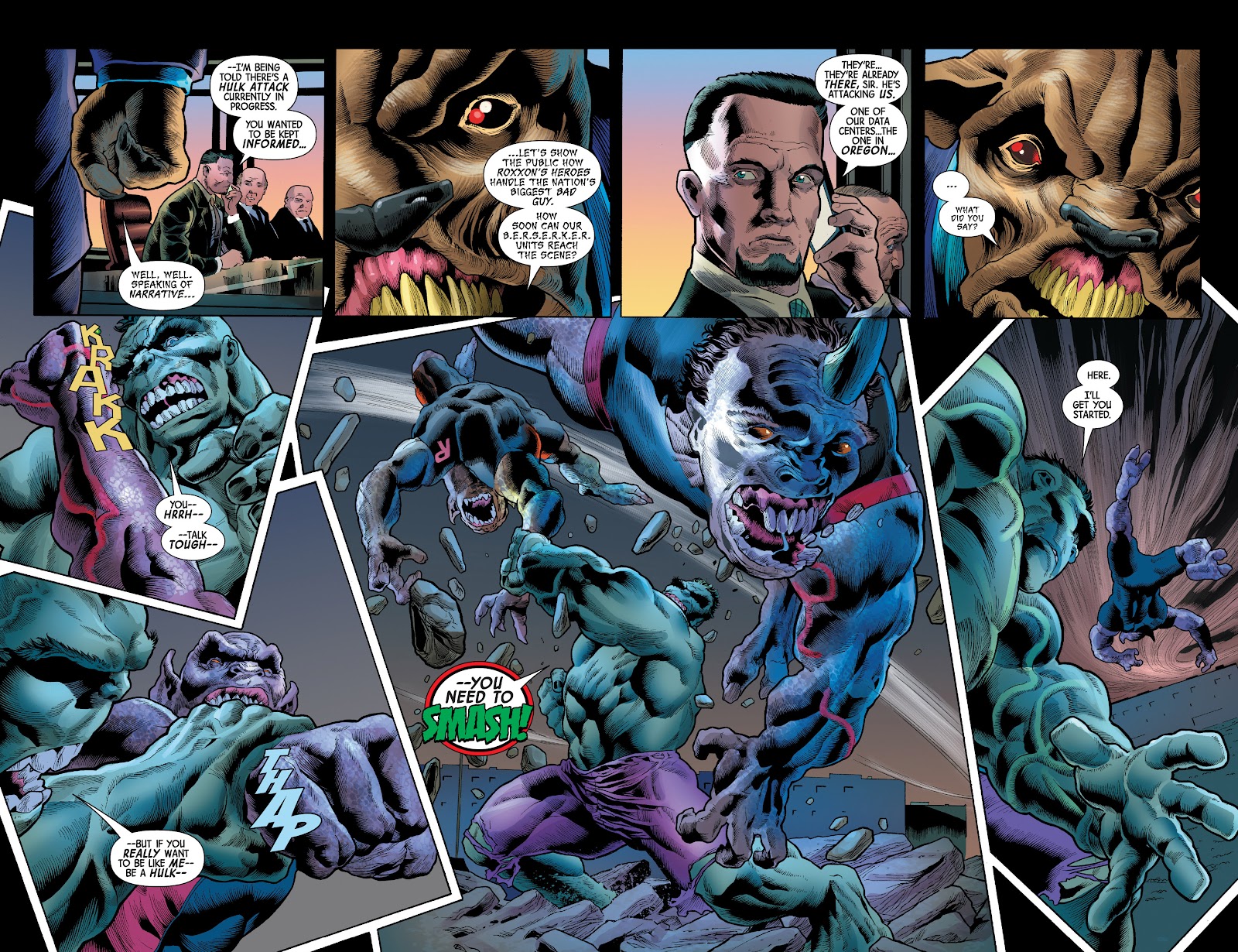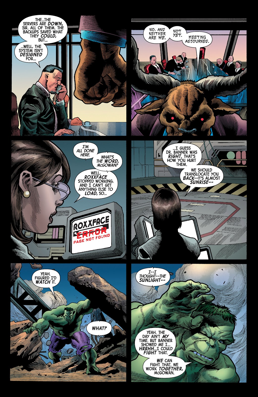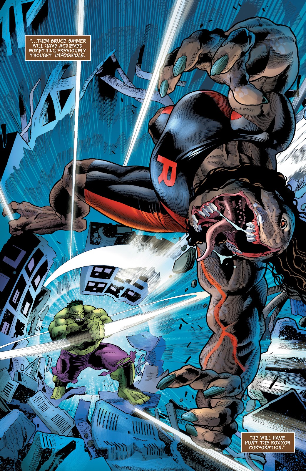 O Imortal Hulk faz sua investida contra a Corporação Roxxon... culminando em uma grande baixa para Dario Agger... o Minotauro. A edição é focada nos duelos do Hulk contra as monstruosidades da corporação... apresentado numa arte hipnotizante de Joe Bennett com nanquins e cores de toda uma equipe-gama.