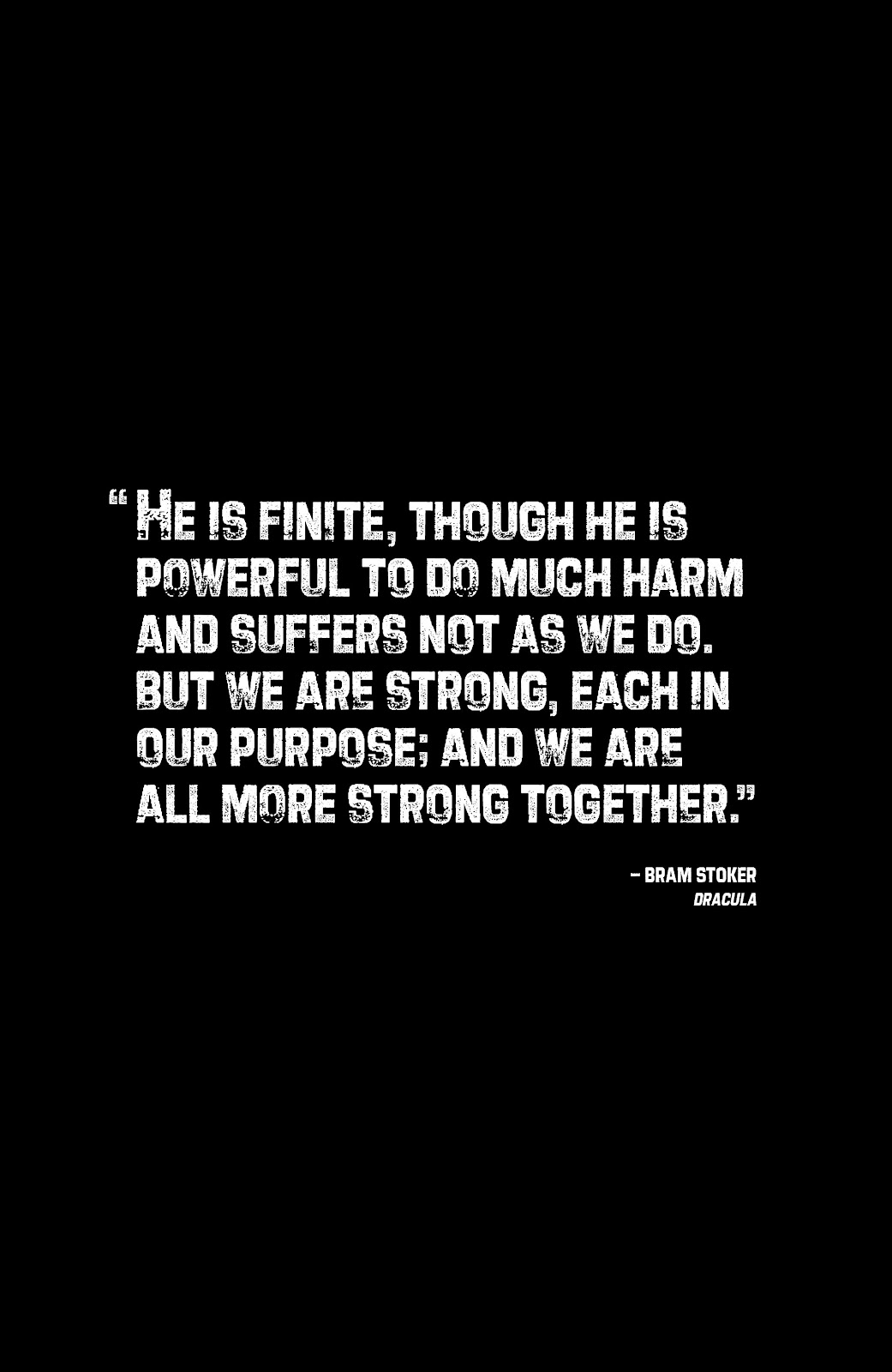 "Ele é finito, embora seja poderoso para causar muito dano e não sofra como nós. Mas somos fortes, cada um em nosso propósito; e somos todos mais fortes juntos."
