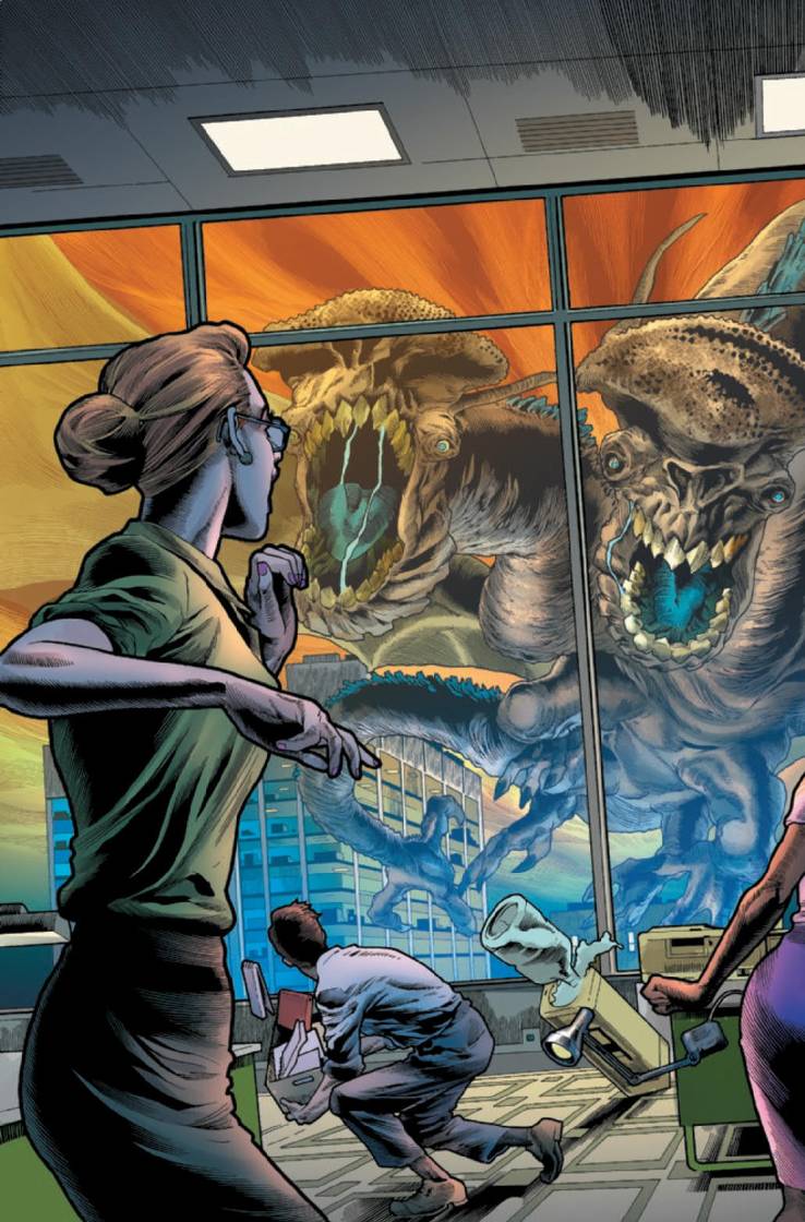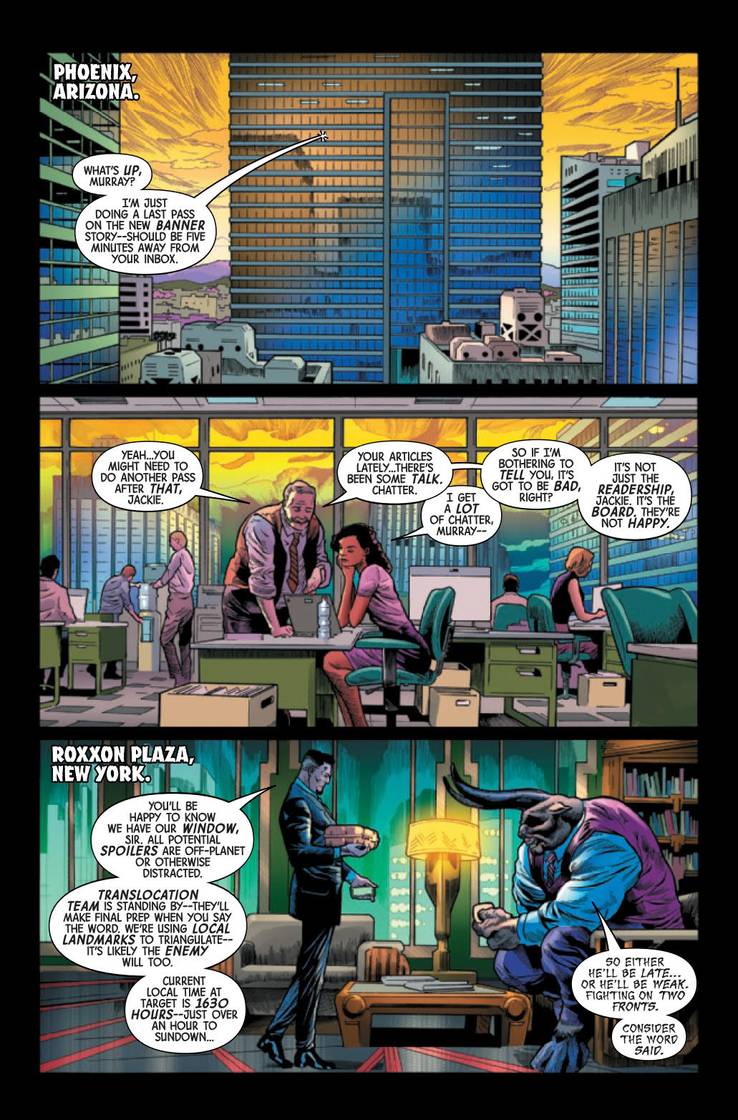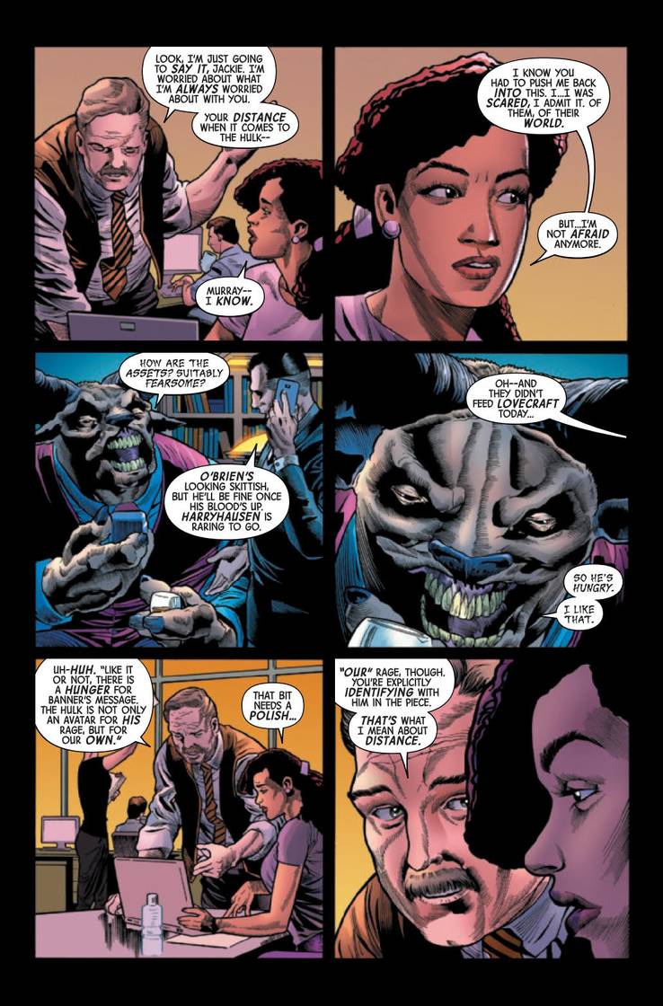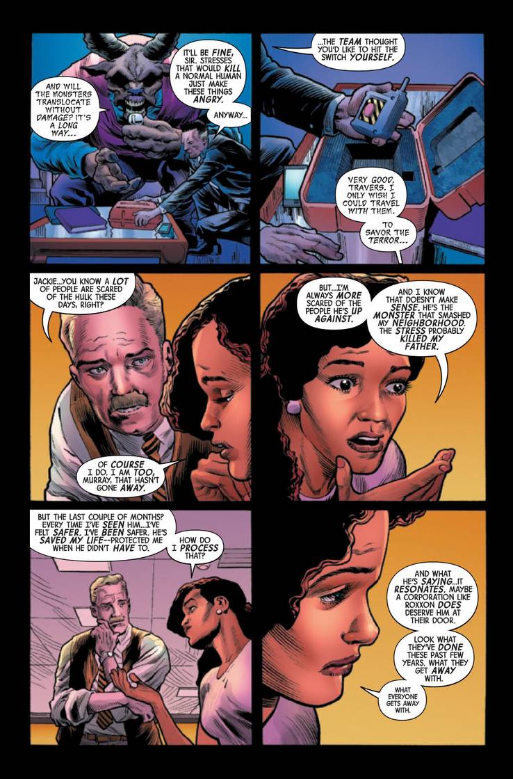 O monstro, que aparece na capa, é solto no prédio de notícias em que Jackie McGee - que foi introduzida no início da série - está trabalhando. Partindo simultaneamente para esta revelação, Dario Agger está na Roxxon discutindo o plano com um de seus assistentes, que indica que os heróis que podem parar sua besta-fera estão distraídos. Você pode ver a visualização exclusiva de Immortal Hulk #29 pela CBR abaixo, juntamente com as informações de solicitação da edição.