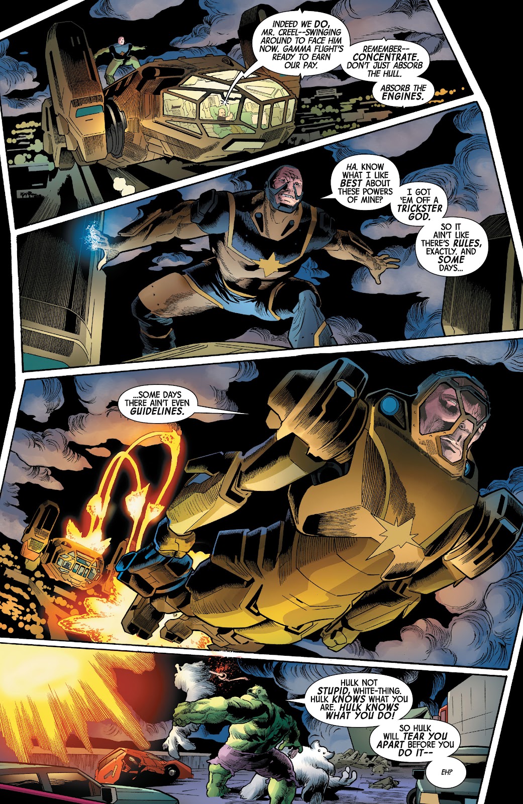 Hulk não liga pra humanos... humanos sempre vão ficar contra Hulk! Coisa-Branca fez alguma coisa com Hulk... Hulk não sabe o que ele fez... mas Hulk não GOSTA DISSO.